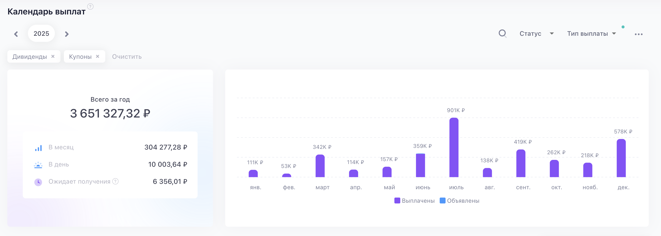 Теперь посмотрим, сколько у нас получилось за 2025-ый год? Не самый простой, скажем так, для инвестиционного сообщества.