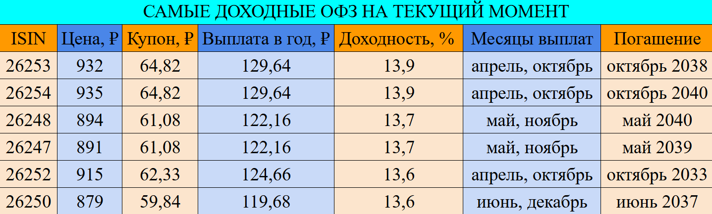 ● ОФЗ 26254 (13,9%)