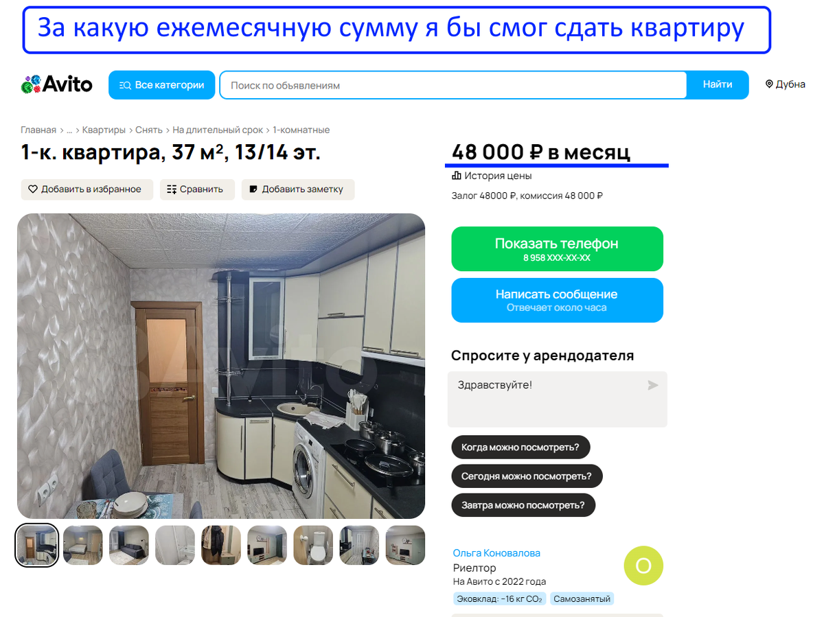 На рынке аренды похожая квартира сдается примерно за 48 000 рублей в месяц: