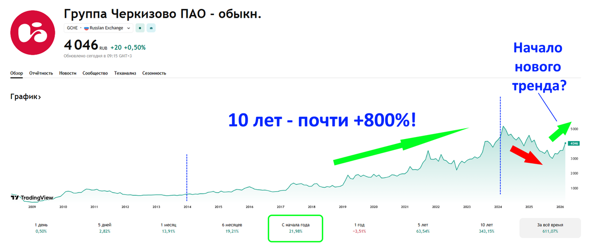 С начала 2026г бумага растёт лучше рынка +20% (против +5% у индекса Мосбиржи). Возможно, сейчас акция в самом начала нового восходящего тренда!
