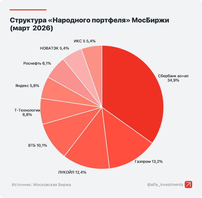 Народный портфель: акции Сбербанка (ао 28,1% и ап 6,8%), Газпрома (13,2%), Лукойла (12,4%), ВТБ (10,1%), Т (6,8%), Роснефти (6,1%), Яндекса (5,8%), X5 (5,4%), Новатэк (5,4%). Роснефть и Новатэк ворвались в топ, а Лукойл нарастил долю на фоне Ирана. Норникель и Полюс выпали из топа.