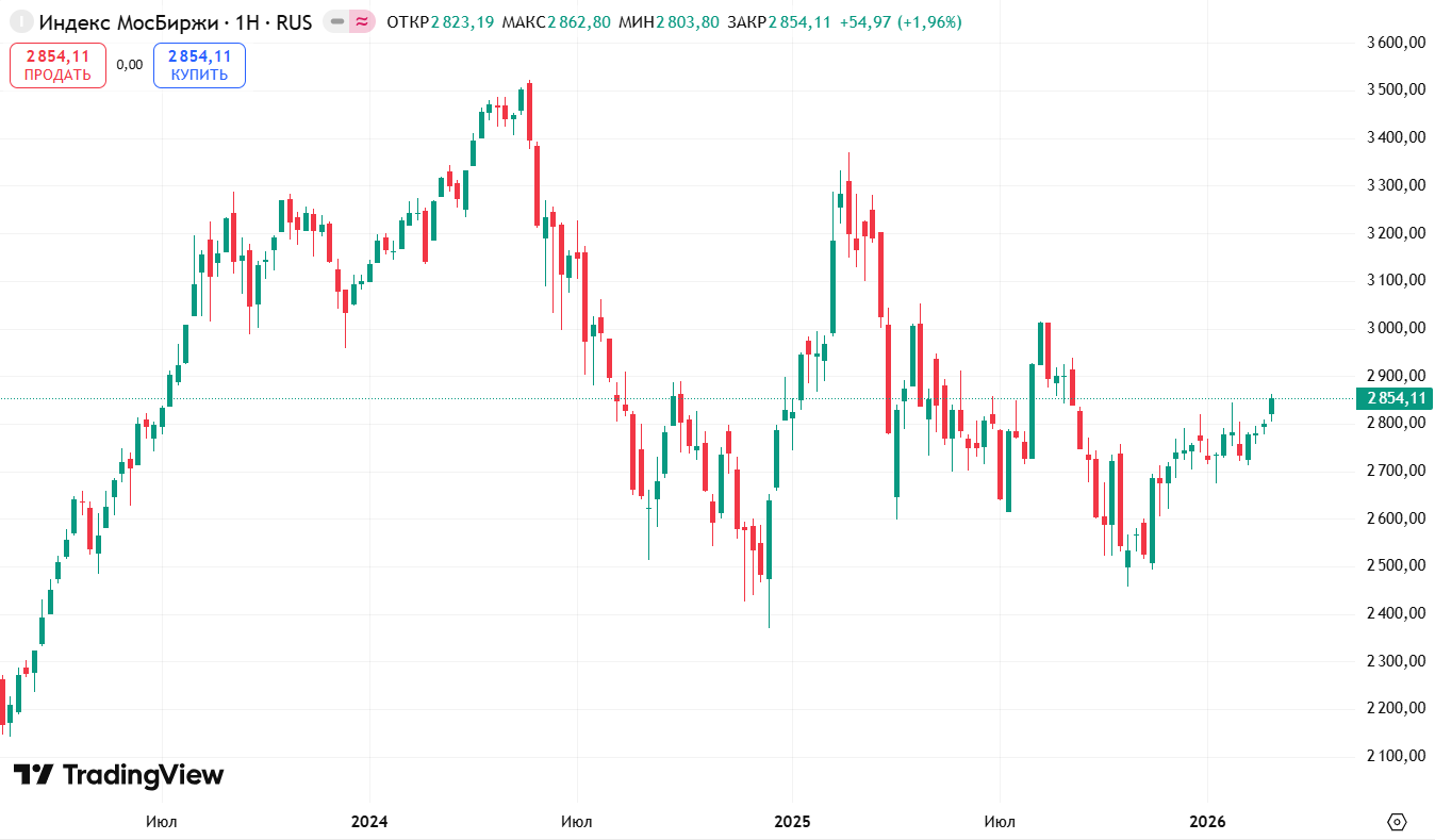 Индекс Московской биржи за неделю немного подрос с 2 799 до 2 854 пунктов. Спасибо нефтяным компаниям.