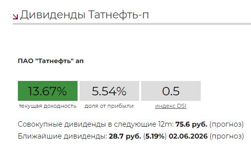 Я жду хороших дивидендов от Татнефти, особенно на фоне конфликта в Иране - цены на нефть идут вверх и дивидендный потенциал компании с каждым днём растёт. К тому же стоит сказать, что выплаты от Татнефть - важная составляющая бюджета Татарстана.