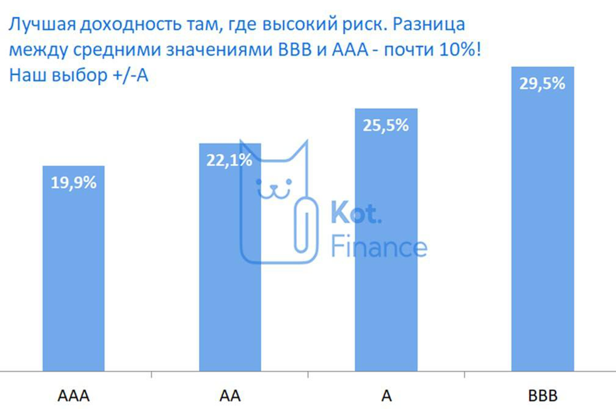 И ведь всего год назад доходность сегмента ВВВ была в районе 30%. Хотя подобную доходность можно найти и сейчас