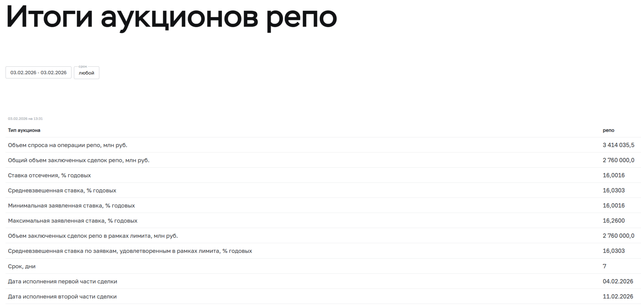 Спрос в 26253 составил 89,8₽ млрд, выручка — 21,2₽ млрд (средневзвешенная цена — 91,09%, доходность — 15,08%). Аукцион 26251 признан несостоявшимся (видимо министерство отказалось давать ещё большую премию к выпуску). Минфин заработал за этот аукцион 21,2₽ млрд (в прошлый — 69,8₽ млрд). Министерство планирует разместить ОФЗ в I кв. 2026 г. на 1,2₽ трлн (разместили 239₽ млрд, осталось 7 недель, с такой динамикой цели не добиться). Но недавно Минфин зарегистрировал 6 доп.выпусков (ОФЗ-ПД) на сумму 2,5₽ трлн, которые станут доступны с 11 февраля, схема с РЕПО активизируется?