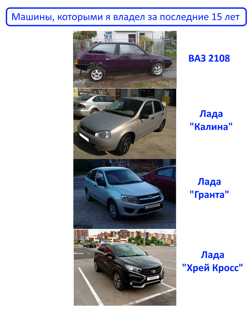 Потом были Лада Калина, Гранта лифтбэк и Хрей Кросс. Все — подержанные, все — бюджетные, но верно служившие мне в те времена, когда доходы были скромными, а мечты — большими.
