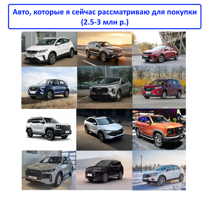 Исходя из текущих предложений на рынке, которые вписываются в мой бюджет и соответствуют критериям, я отобрал следующие авто: