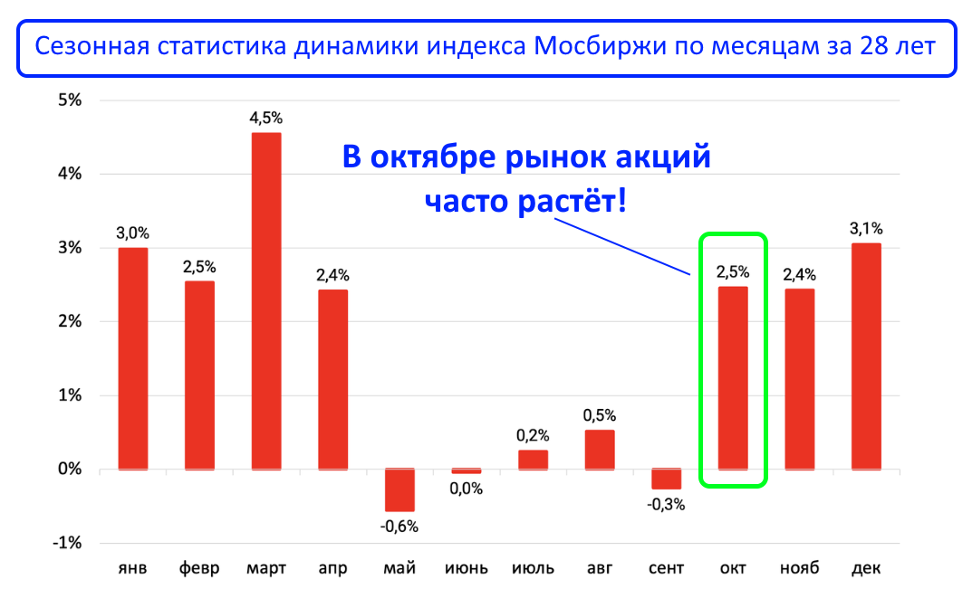 Сезонность - октябрь исторически благоприятен для рынка РФ. Позитив!