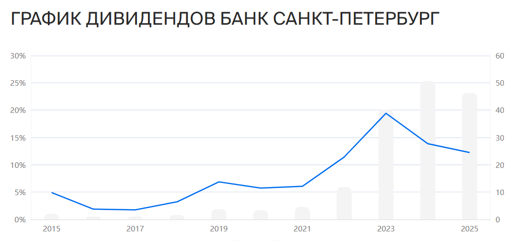 Дивидендная политика Банка Санкт-Петербург (март 2024) предусматривает отчисления на выплату по обыкновенным акциям дивидендов в пределах от 20% до 50% от чистой прибыли по МСФО с учетом имеющегося в распоряжении свободного капитала