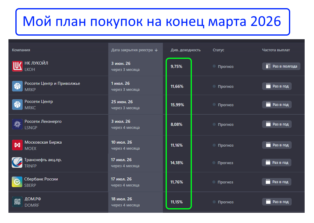 Это компании, которые готовят нам щедрые летние сюрпризы. Почти все они планируют выплатить ДВУЗНАЧНЫЕ дивиденды (8-16%!). Я хочу докупить их до отсечки, потому что обычно перед дивидендами народ активно скупает акции, толкая цену вверх. А через пару месяцев уже получу и сами дивиденды.
