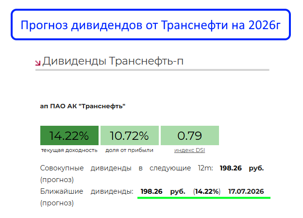 Транснефть - дивидендный аристократ нашего рынка: платит без пропусков уже 25 лет подряд. И выплаты часто двузначные. Прогноз на 2026г около 14,2%