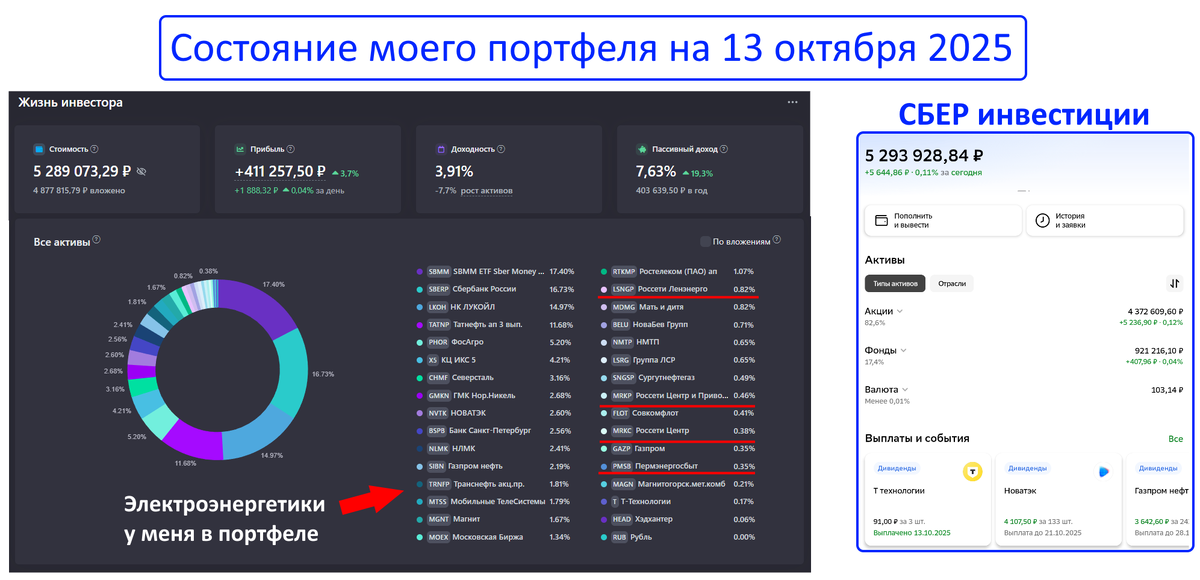 У меня в портфеле есть несколько акций из сектора электроэнергетики, поэтому меня этот вопрос тревожит (состав моего портфеля на скрине из сервиса учёта инвестиций и приложения СБЕР инвестиции):