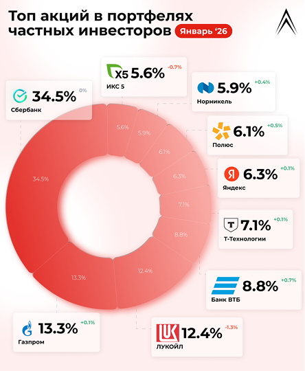 Привет, инвесторы! Мосбиржа показала народный портфель января, ну и что мы там видим? Ни разу не вандерфульно. ЛУКОЙЛ снова уступил 2 место Газпрому. Что еще? Снова пора посмотреть, что же произошло, кто топчик, а кто получил леща.