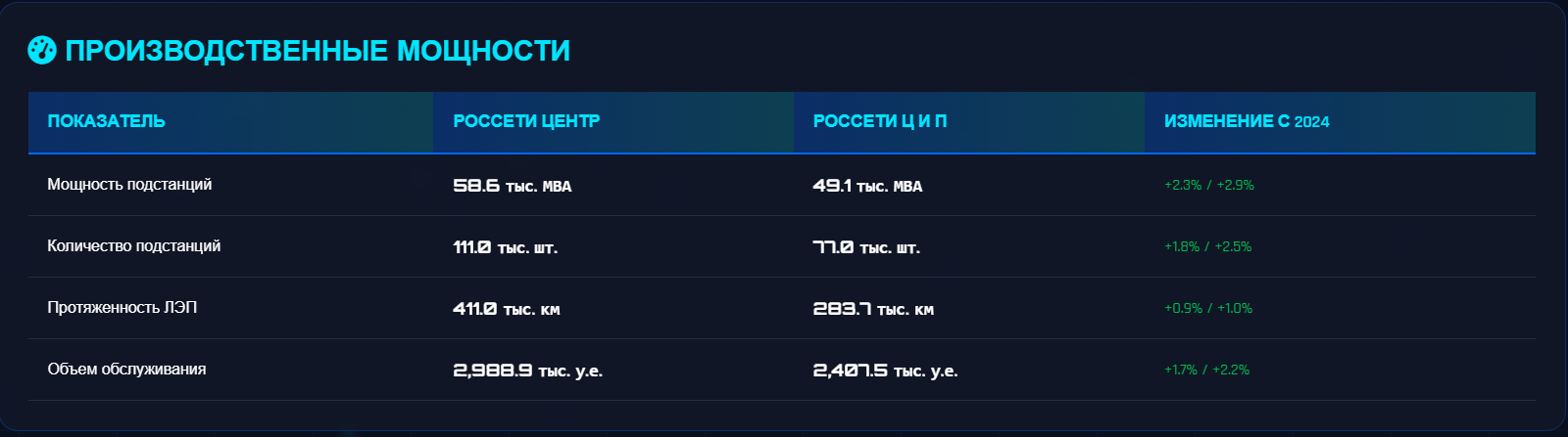 Инвестиционная программа 40+ млрд руб. на 2025 год. Ввод 1,444 МВА новых мощностей. Развитие в 20 регионах (17% населения РФ).