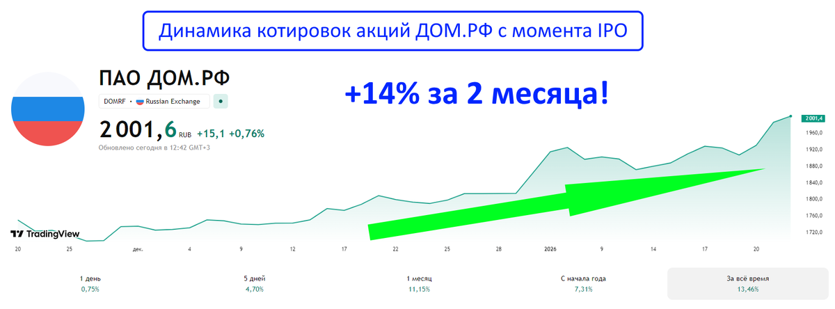 20 ноября 2025г начались торги акциями ДОМ.РФ и это одно из немногих IPO, которое действительно прошло успешно, особенно на фоне провала других эмитентов, вышедших на рынок за последние 2 года (из 18 новых публичных компаний 13 ушли в минус).