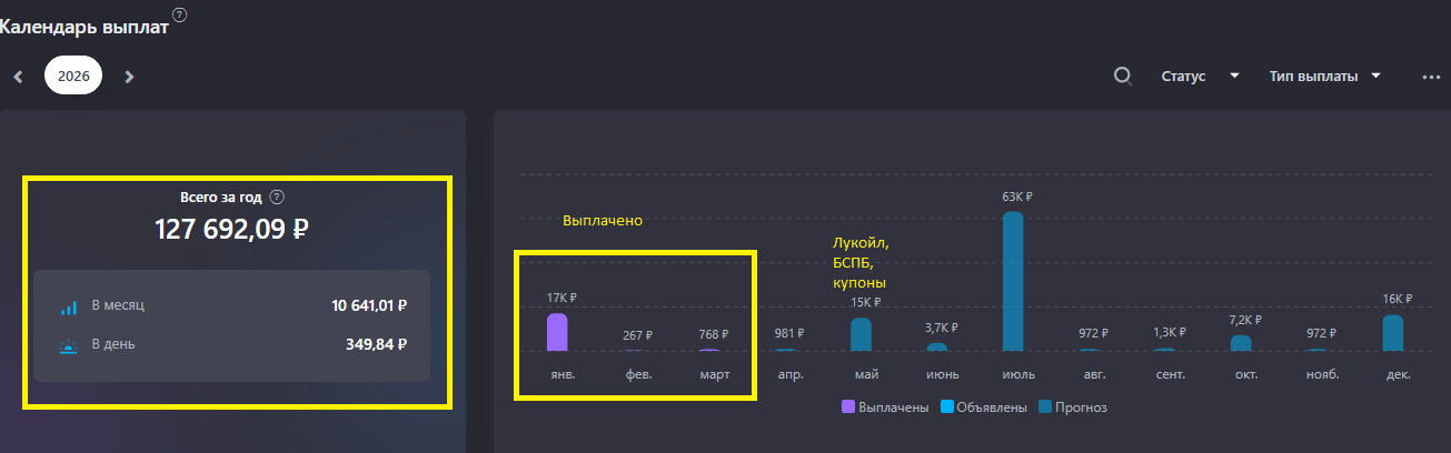 Дивиденды и купоны за месяц