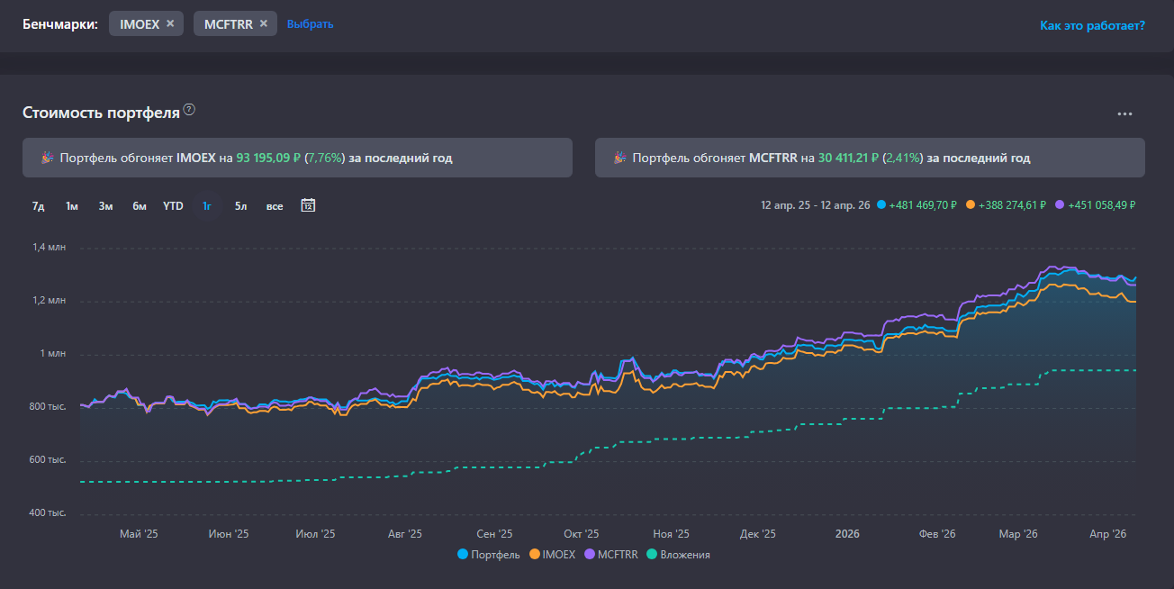 Пока пополнил портфель в апреле на 20 000 р. В планах: