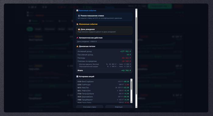 Версия v2.0 — это тот самый момент, когда симулятор перестает быть просто «поиграться про инвестиции», а начинает учить через опыт, иногда болезненный, но зато максимально честный.