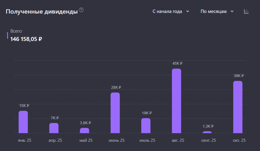 Октябрь месяц стал вторым по сумме поступлений дивидендов и купонов, рекорд остается за августом. Об этом напишу подробнее в регулярной рубрике про пассивный доход по месяцам.