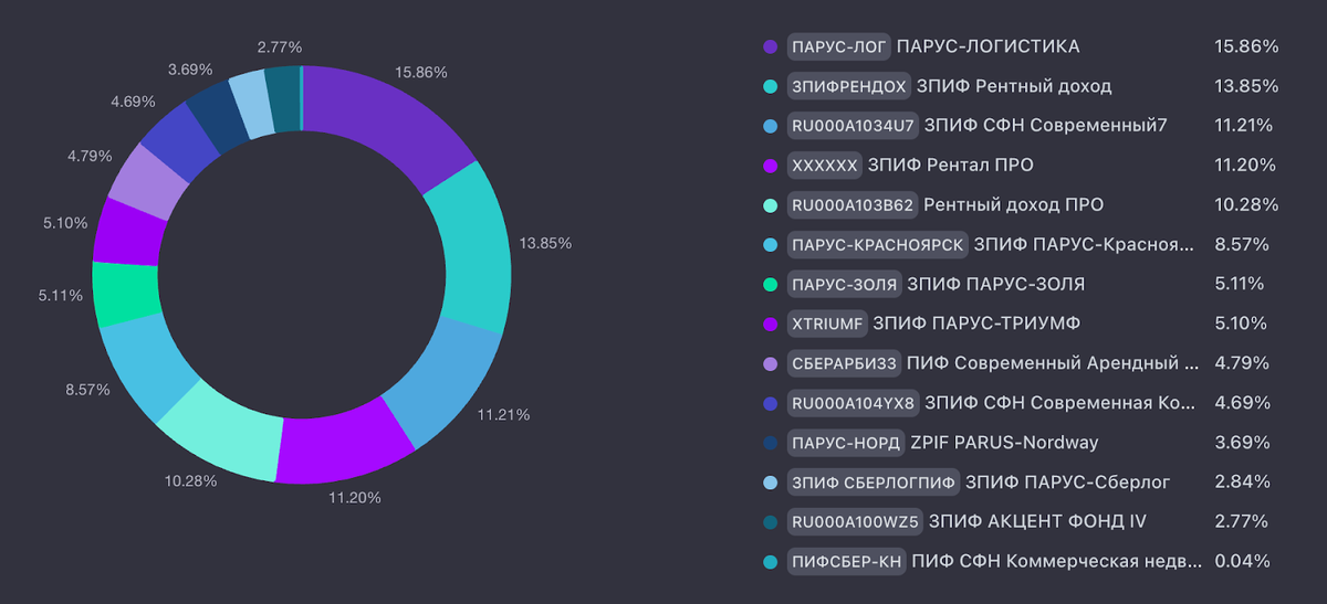 Скрин из сервиса учёта инвестиций — все ЗПИФы