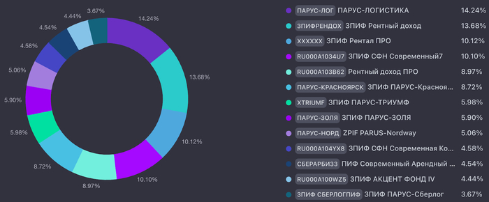 Скрин из сервиса учёта инвестиций — все ЗПИФы