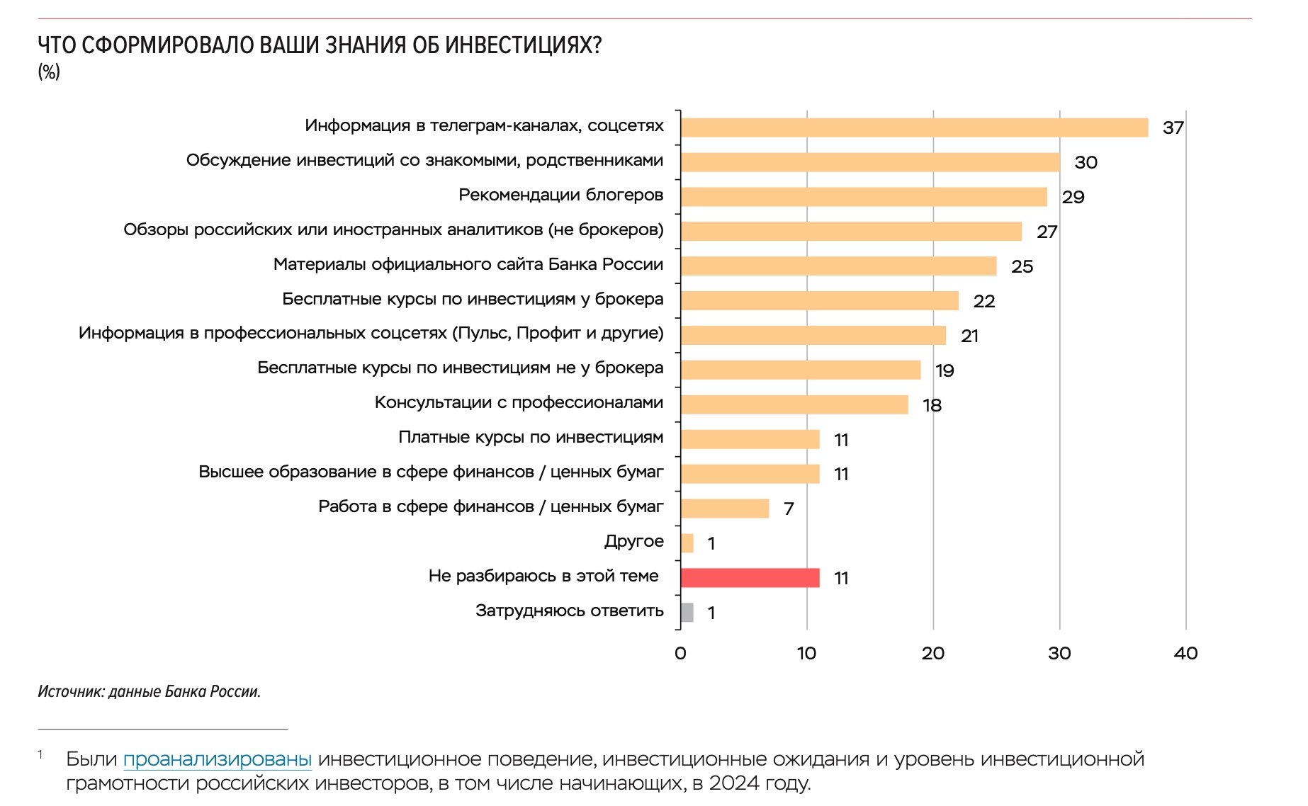 Давайте честно. Открываешь доклад ЦБ, доходишь до диаграммы «Что сформировало ваши знания об инвестициях?» — и хочется ущипнуть себя.