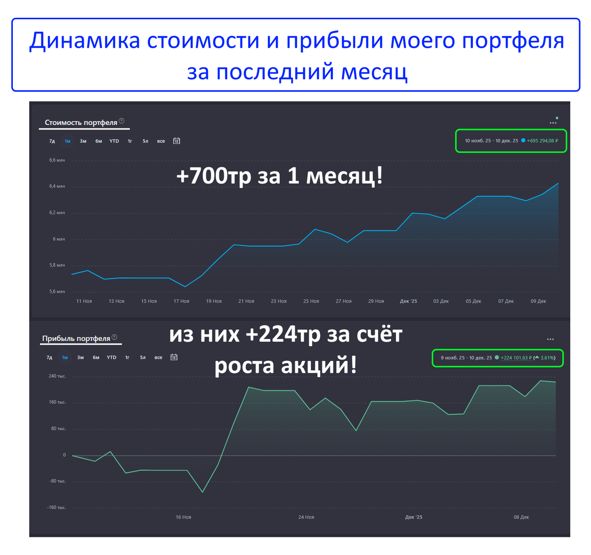 За последний месяц общая стоимость моего инвестиционного портфеля увеличилась почти на 700 000р: