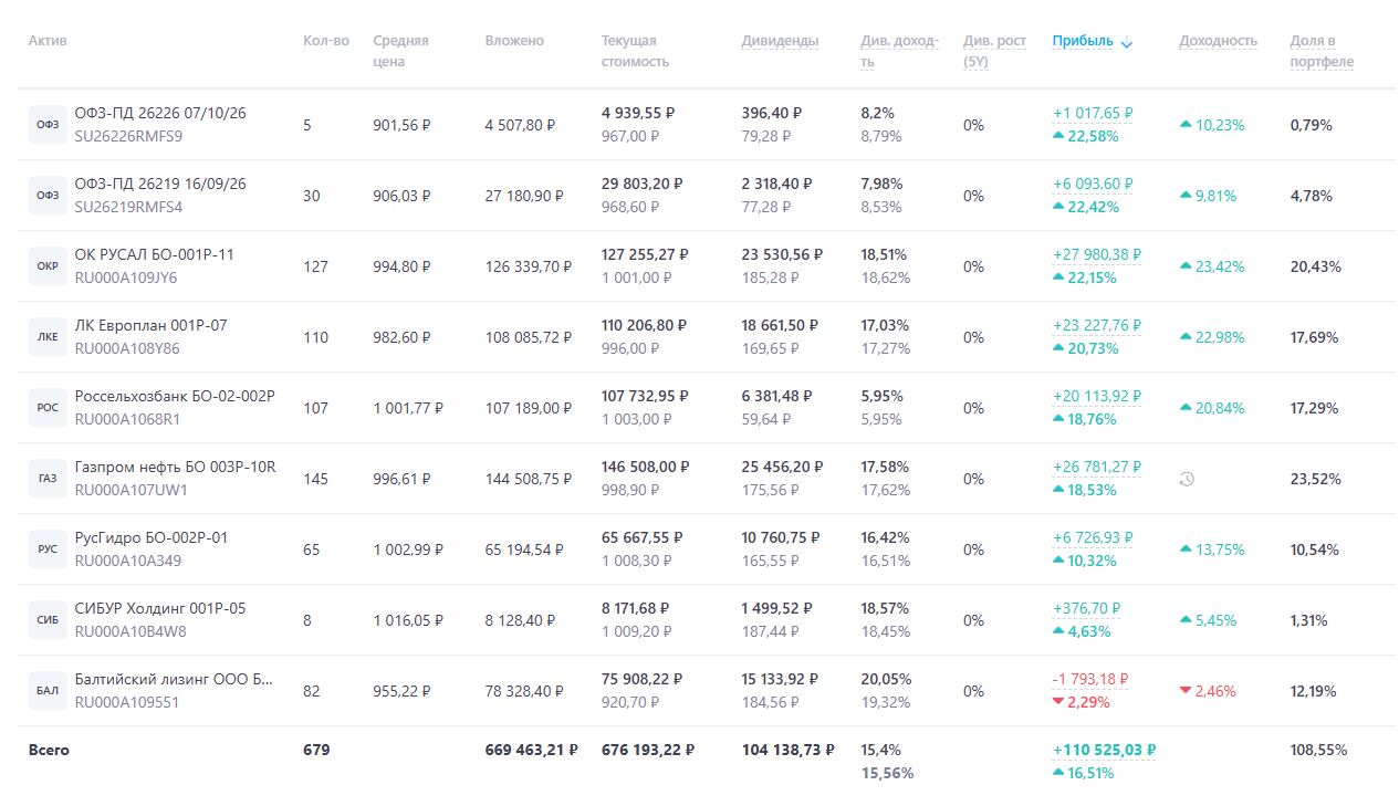 • 160 660 руб. — инвестиционный доход портфеля.