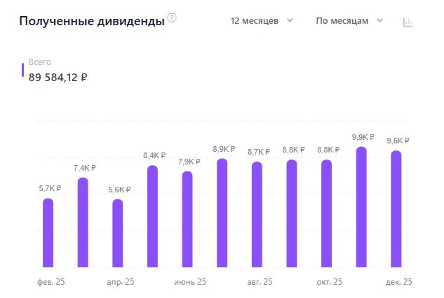 За 2025 год портфель заработал только на купонах почти 90 000 руб.