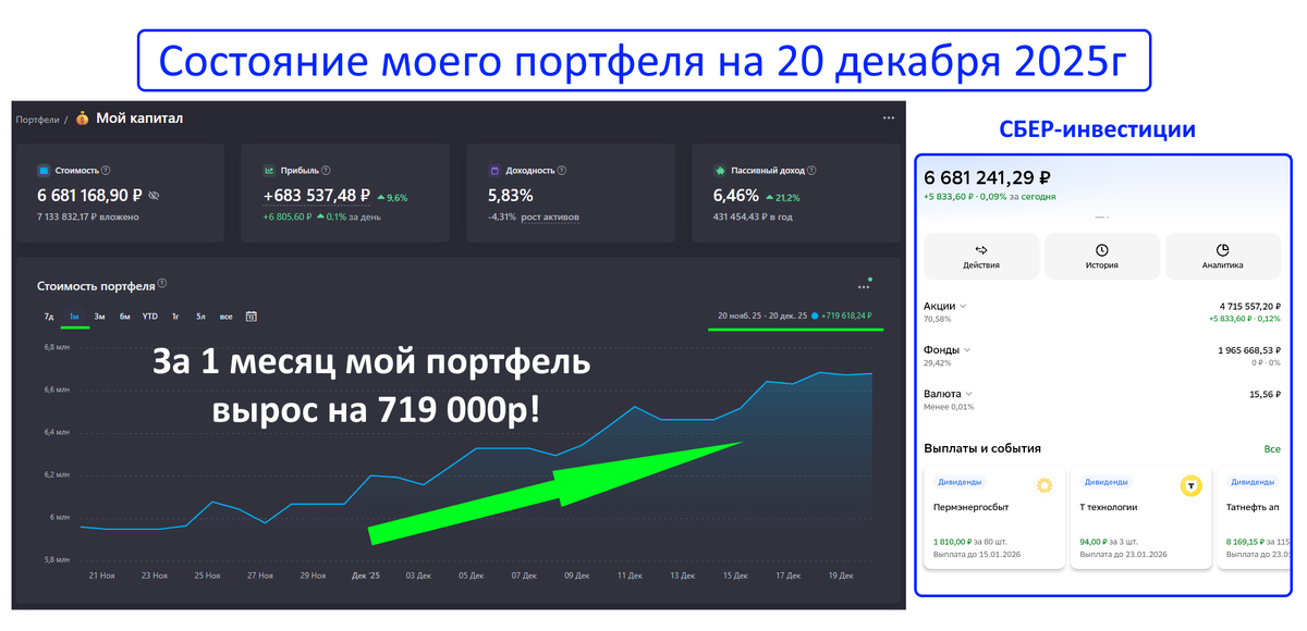 За последний месяц портфель хорошо подрос (+719 000р) на фоне активизации мирных переговоров и конечно же моих активных пополнений.