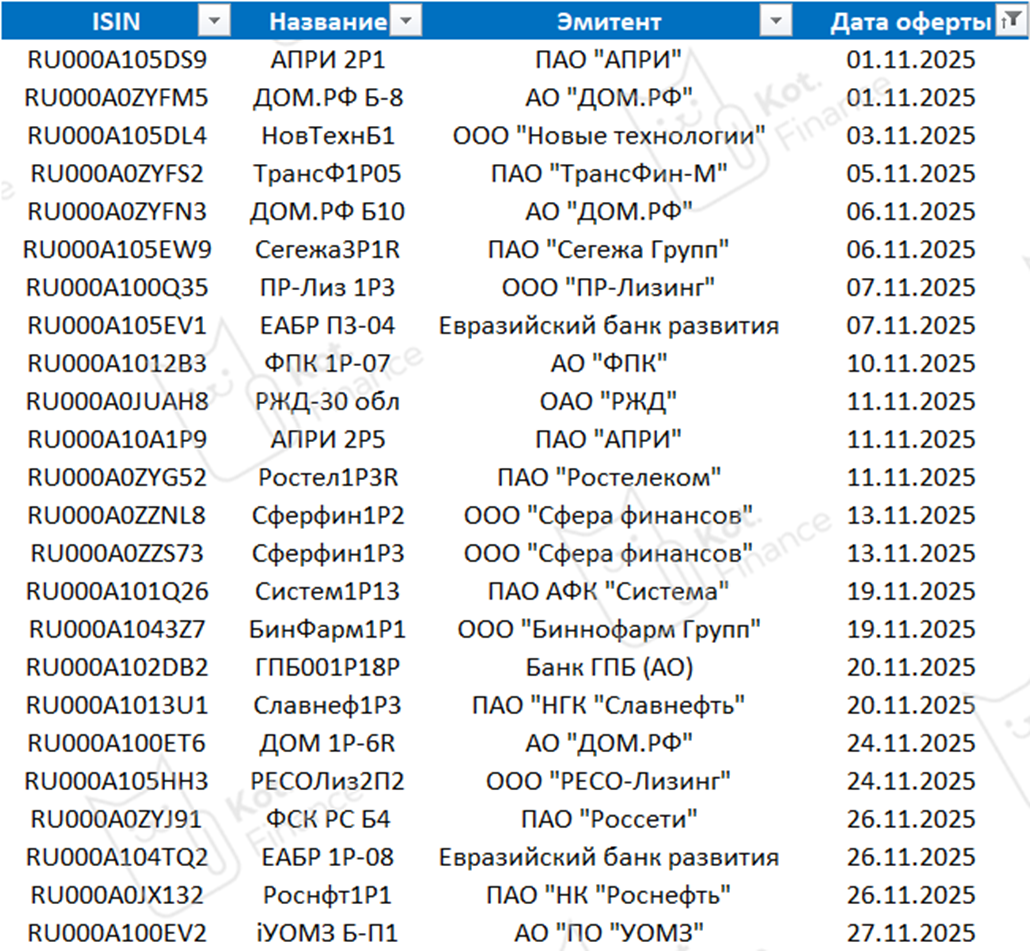 В ноябре нам интересны: Аренза (на стыке двух месяцев), Новые технологии (уже рассмотрели), Сегежа, АФК Система, Биннофарм, РЕСО-Лизинг. Эти выпуски периодически мелькают в наших портфелях и автоследах. От Роснефти чуда не ждем, тем более выпуск неликвидный. Скорее всего, он подходит под пост