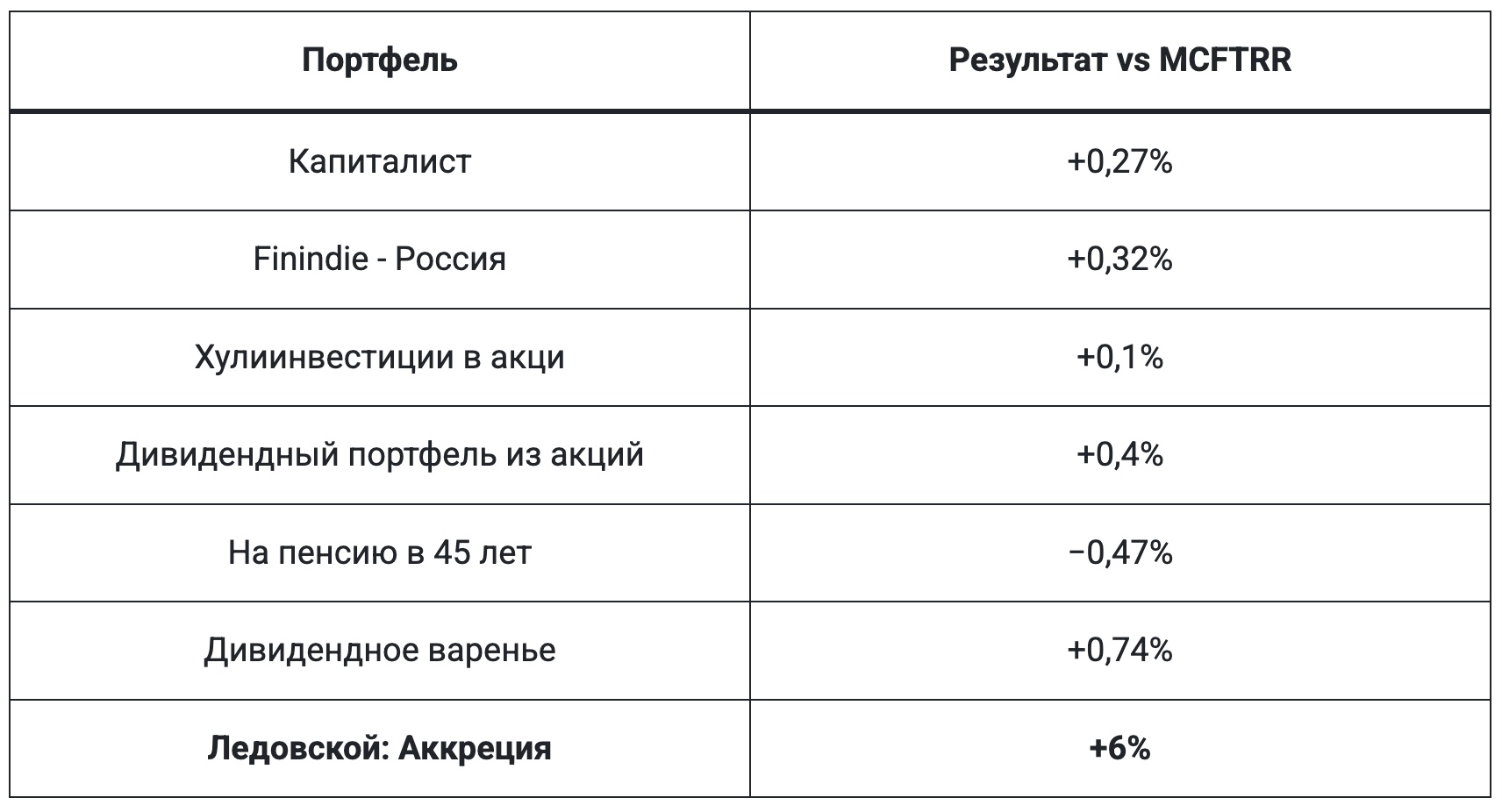 Я просто показываю цифры за один и тот же период по одному и тому же бенчмарку (MCFTRR).