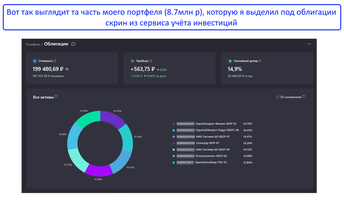 Сейчас доля облигаций в моём портфеле выглядит так: