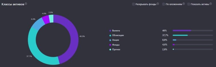 Портфель максимально консервативен, текущая стоимость 6,46М. Состав: