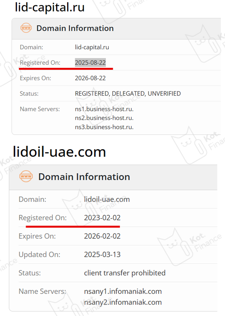 Мало «истории»: noname, о которой мы не слышали до размещения. Даже сайты зарегистрированы в 2023 (UAE), в августе 2025 (РФ)