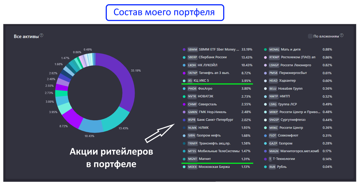 Если заглянуть в мой портфель, то в нём уже присутствуют две акции из этого обзора: X5 и Магнит.