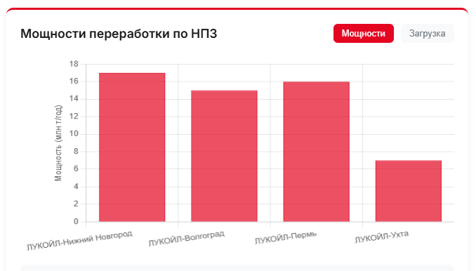 Компания продолжает модернизацию нефтеперерабатывающих заводов. В 2025 году отмечается снижение объемов переработки в связи с рыночной конъюнктурой и плановыми ремонтами.