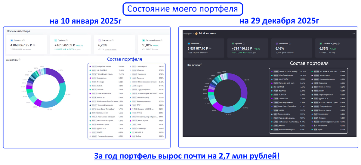 На скринах стоимость портфеля на начало 2025г и на его конец: