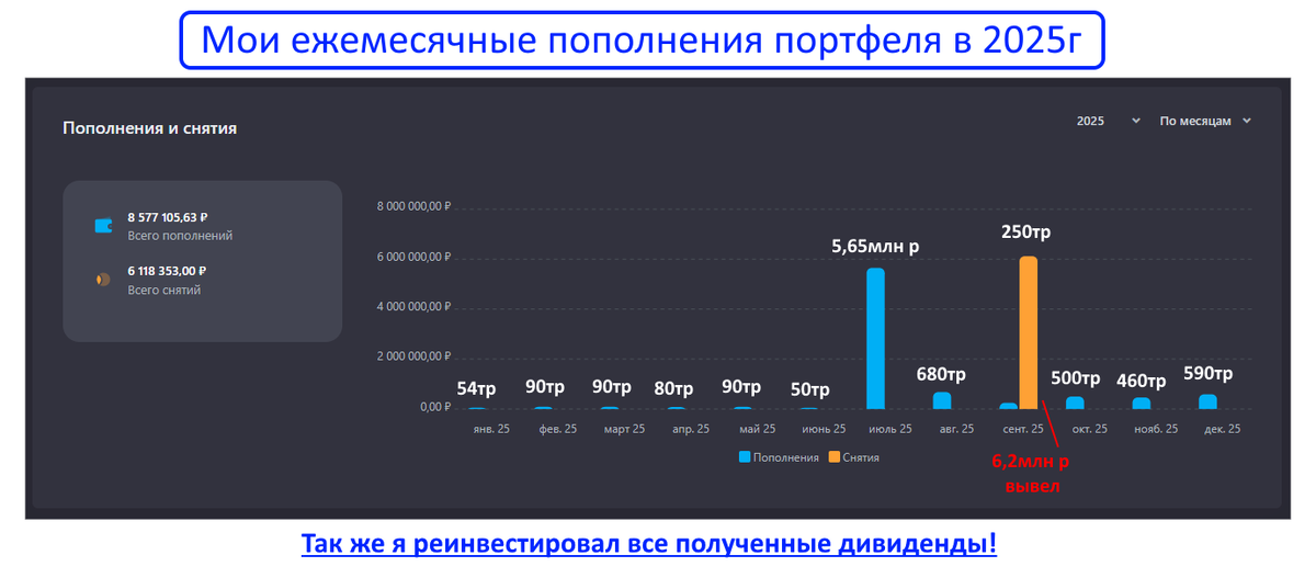 На скрине мои пополнения портфеля за 2025г: