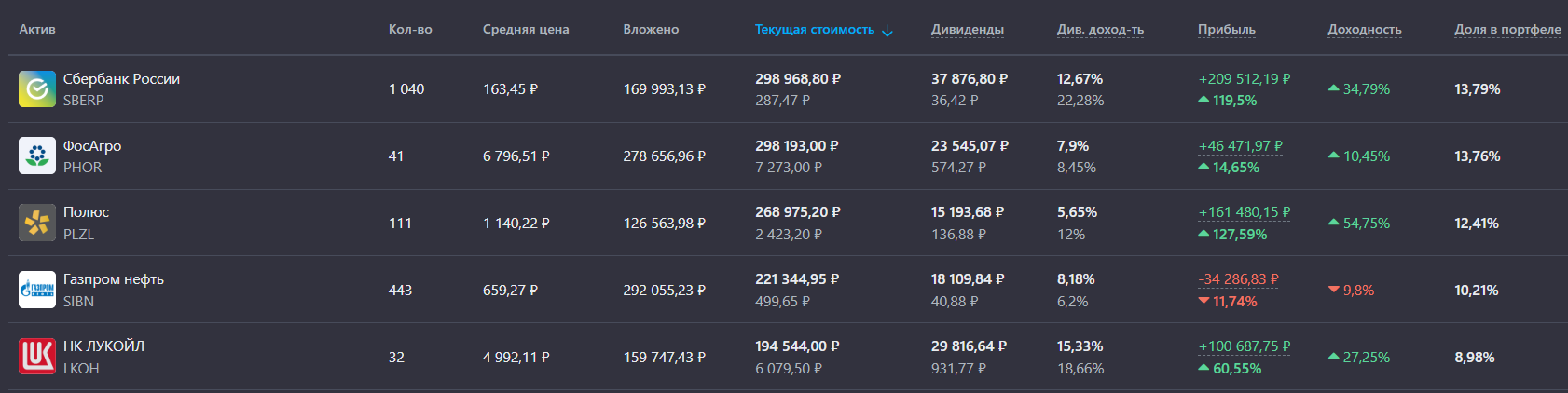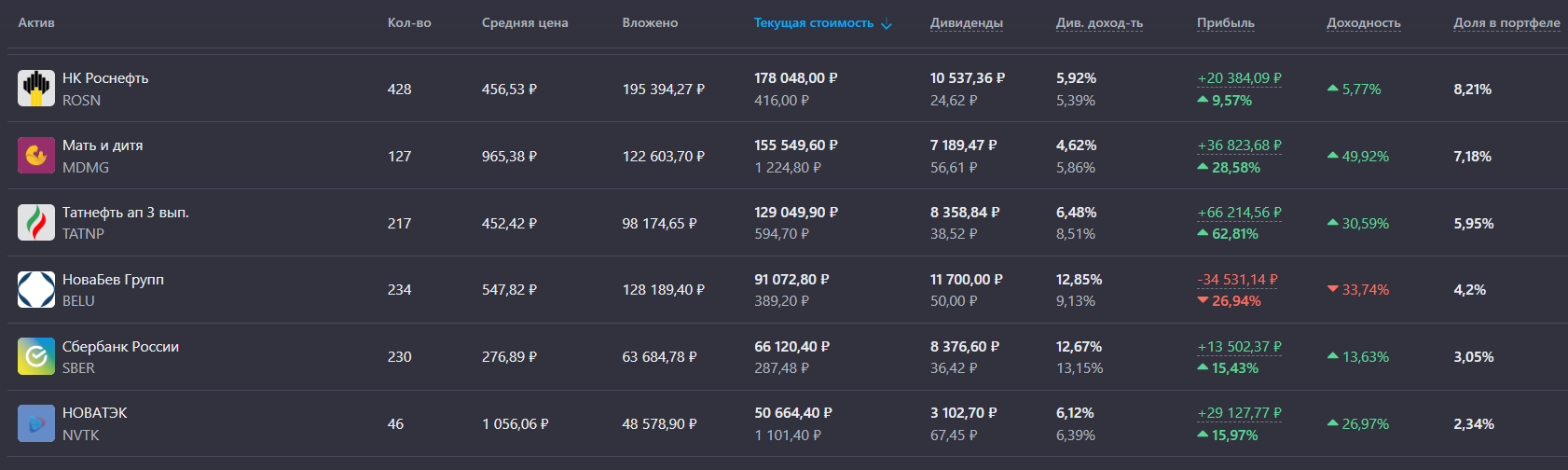 Переходим к самому главному, к составу акций моего портфеля. Ваши предпочтения и интересы могут не совпадать с моими, и в принципе, это нормально.