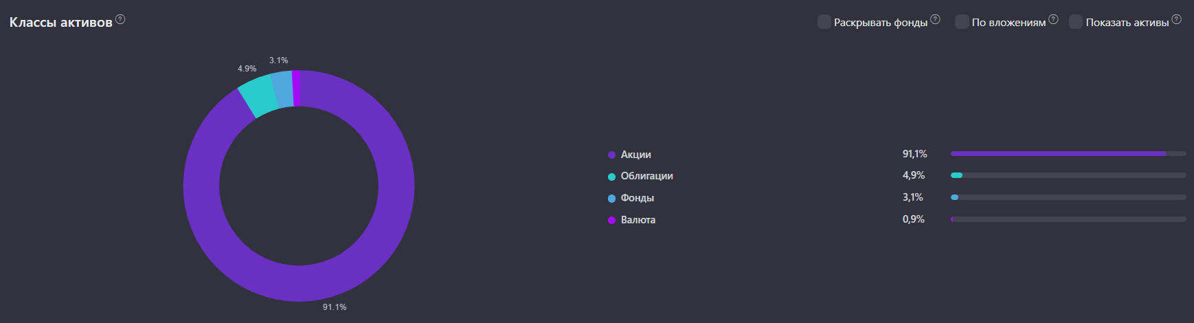 Постепенно привожу доли к целевым значением. Еще в мае был полностью в акциях. Делаю все экологичным способом, то есть акции не трогаю и не продаю. Все за счет дивидендов, купонов и внешних поступлений.