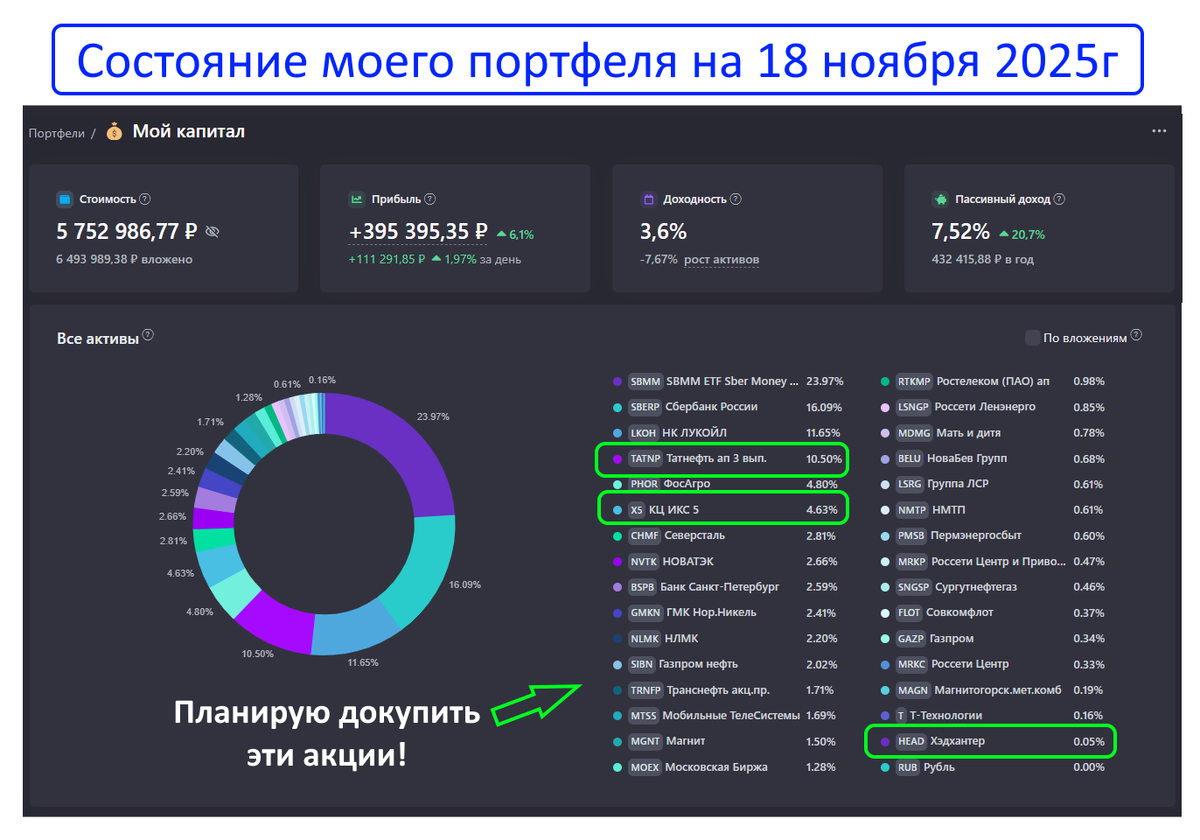 Официальная инфляция на ноябрь 2025г - 7.7%. Значит я ищу акции с годовыми дивидендами выше этого значений. Это гарантирует, что мой капитал не просто сохраняется, а прирастает в реальном выражении.
