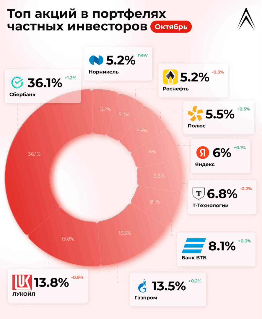 Привет, инвесторы! Мосбиржа показала народный портфель октября, и в нем снова есть изменения, а значит можно и нужно посмотреть, что же произошло, кто вошел в десятку с двух ног, кто вылетел как пушечное ядро и как в целом изменились доли акций.
