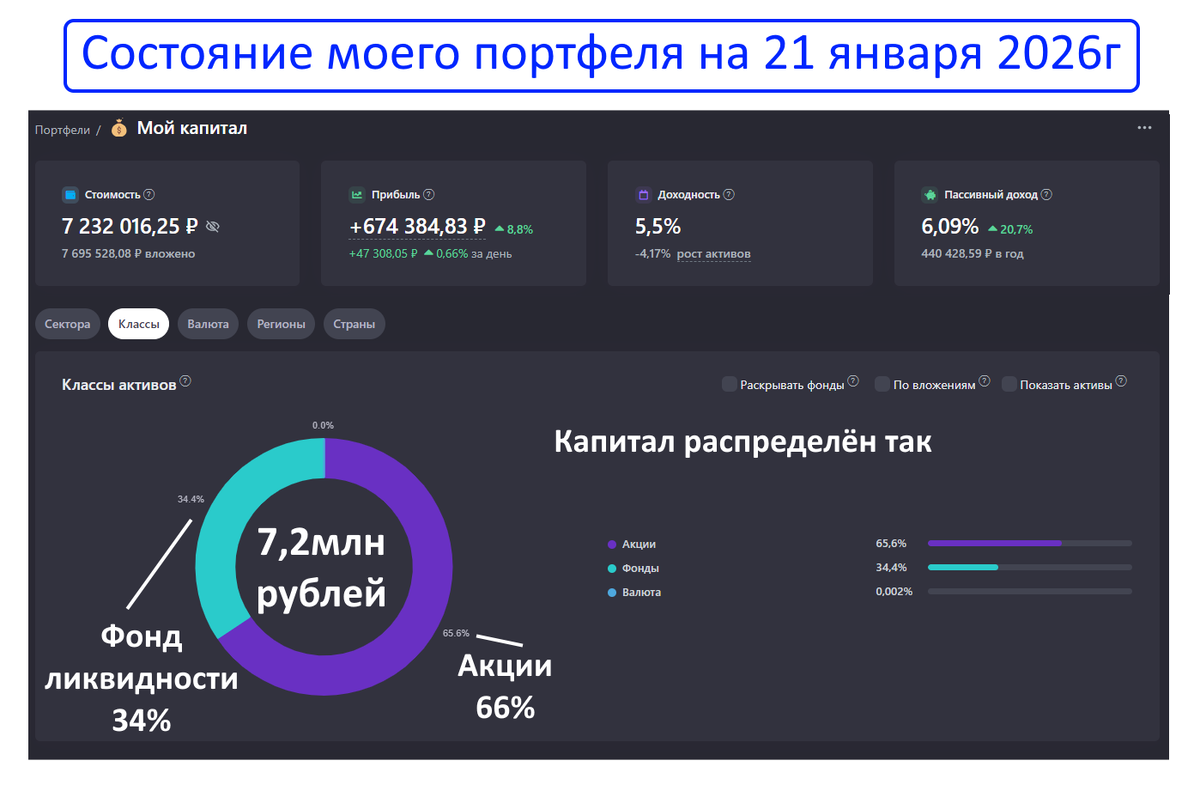 66% (4.73млн р) - дивидендные акции (будущий рост и сложный процент)