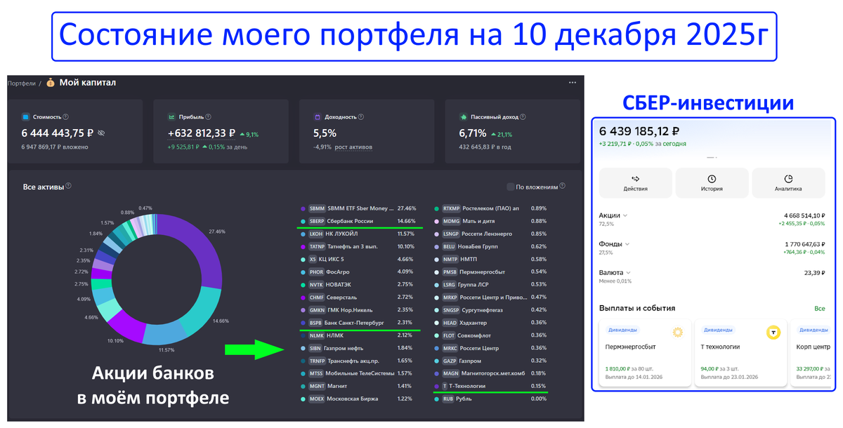В подтверждении своих выводов по банкам покажу, какие из них есть в моём портфеле (скрин из сервиса учёта инвестиций):