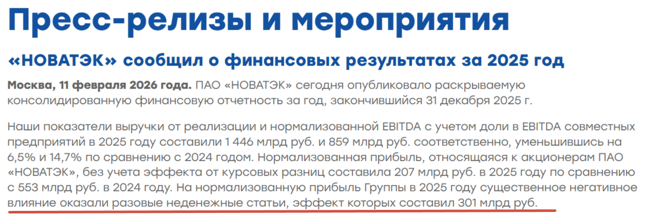 ️ НОВАТЭК опубликовал финансовые результаты по МСФО за 2025 г. Компания в очередной раз сократила отчётность (интересные статьи скрыты, но я попытаюсь разобраться в отчёте). В целом отчёт по цифрам настораживает (II полугодие провели слабее, чем I), но стоит учитывать санкционное давление, цену сырья и курсовые разницы (если сравнивать с нефтегазовым сектором, то компания ещё прилично держится):