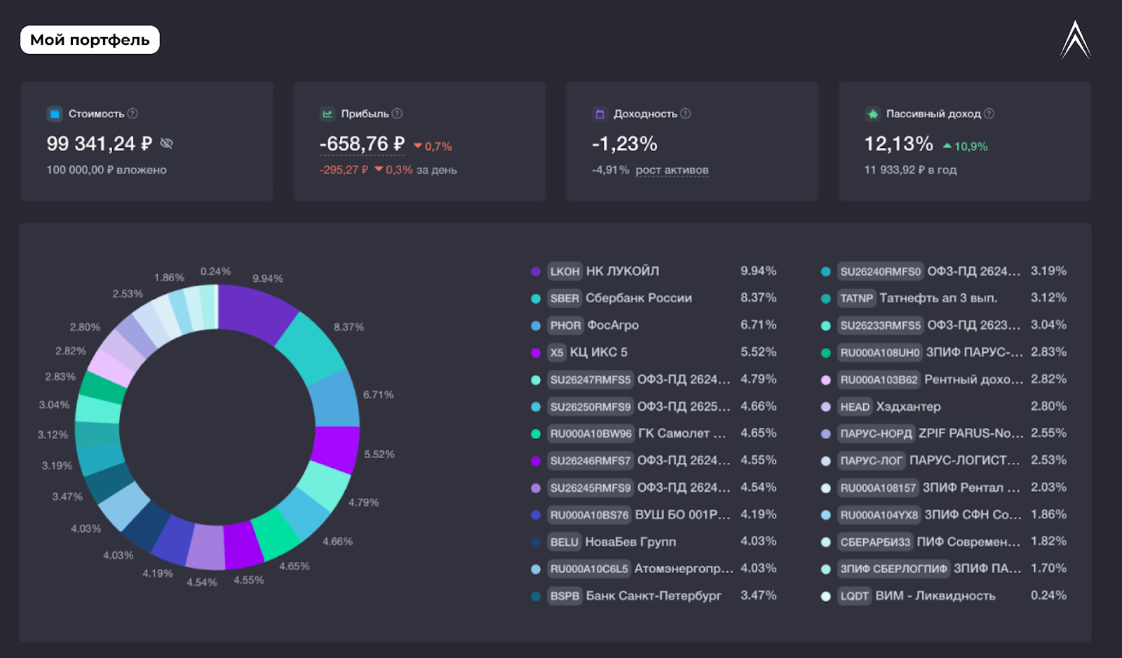 Моя главная цель — получать денежный поток любыми способами. Все мои пополнения, покупки и полученный пассивный доход можно увидеть в моем публичном портфеле.