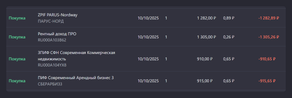 Итого, у меня уже 8 фондов по 1–2 пая: САБ 3, СКН, РД ПРО, Парус-НОРД, Парус-ЛОГ, Парус-СБЛ, Парус-Красноярск и Рентал ПРО. Состав укомплектован, буду их теперь только докупать.
