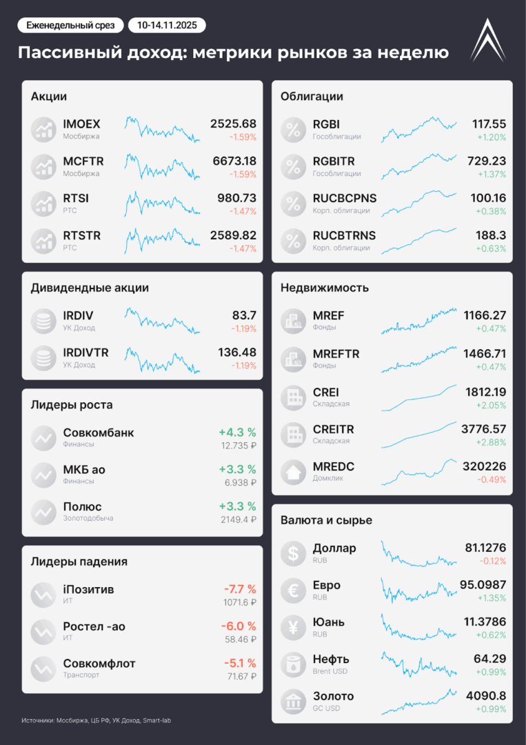 Привет, инвесторы! Готова новая инфографика от канала «Пассивный доход» — для всех, кто ценит дивиденды, купоны и рентные платежи. Самые важные цифры недели, чтобы быть в теме и держать руку на пульсе. Снова падаем!