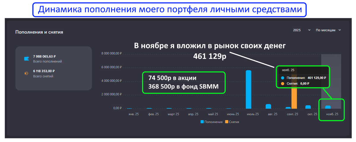 В ноябре общий объем инвестиций составил около 461 000р, которые были распределены так: